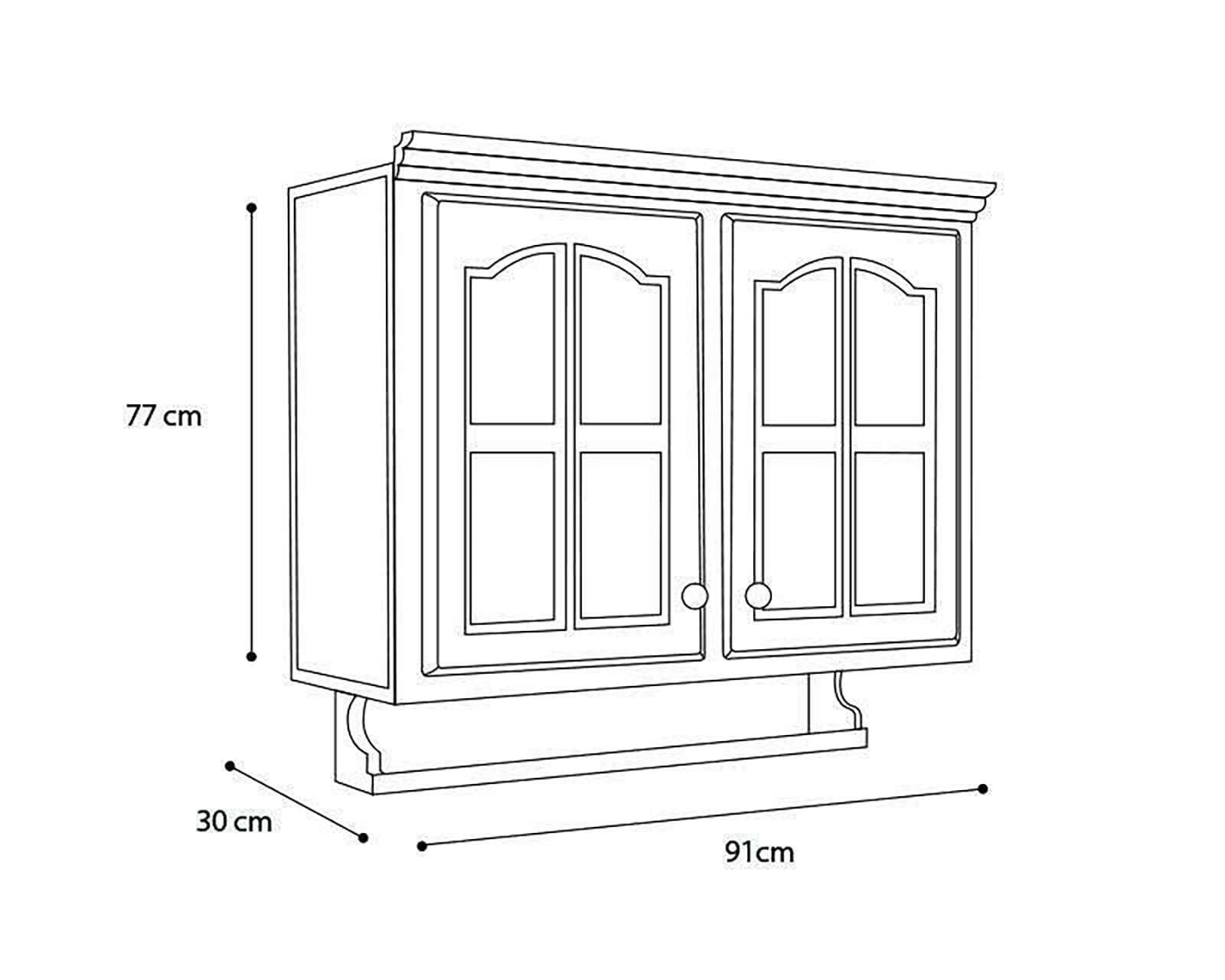 - Medidas parte superior (largo×ancho×alto): Alacena superior: 91 x 30 x 77 cm