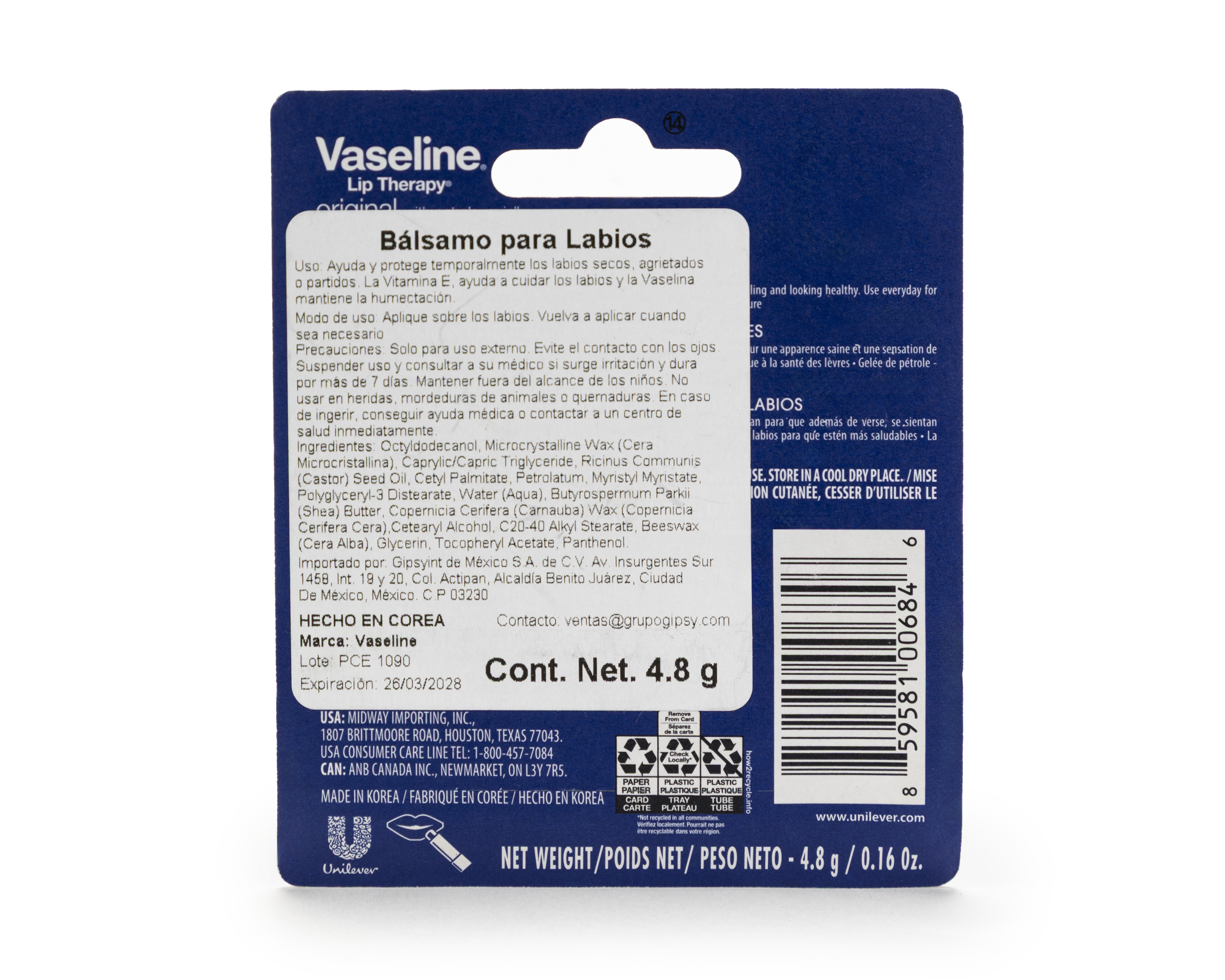 - Bálsamo Labial Vaseline Original 4.8 g
