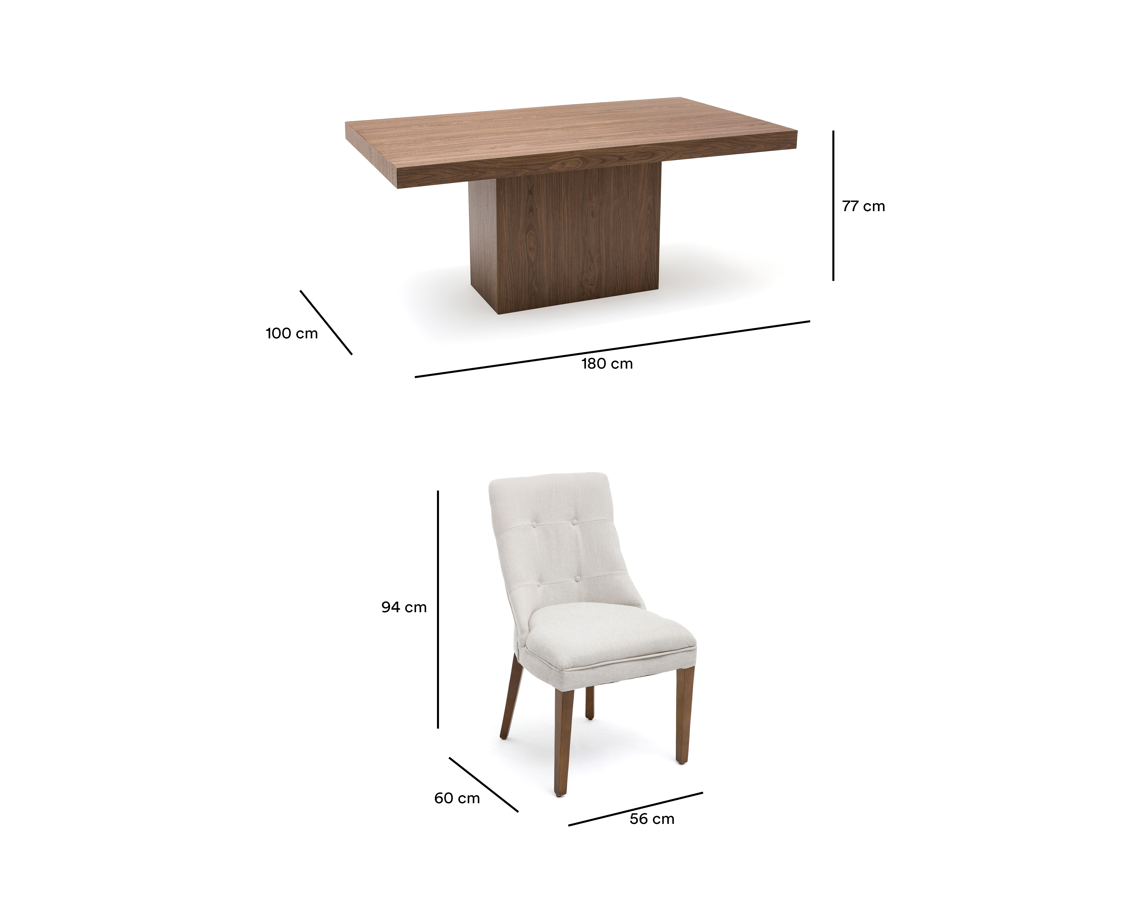 - Medidas de la silla (largo x ancho x alto): 56 x 60 x 94 cm