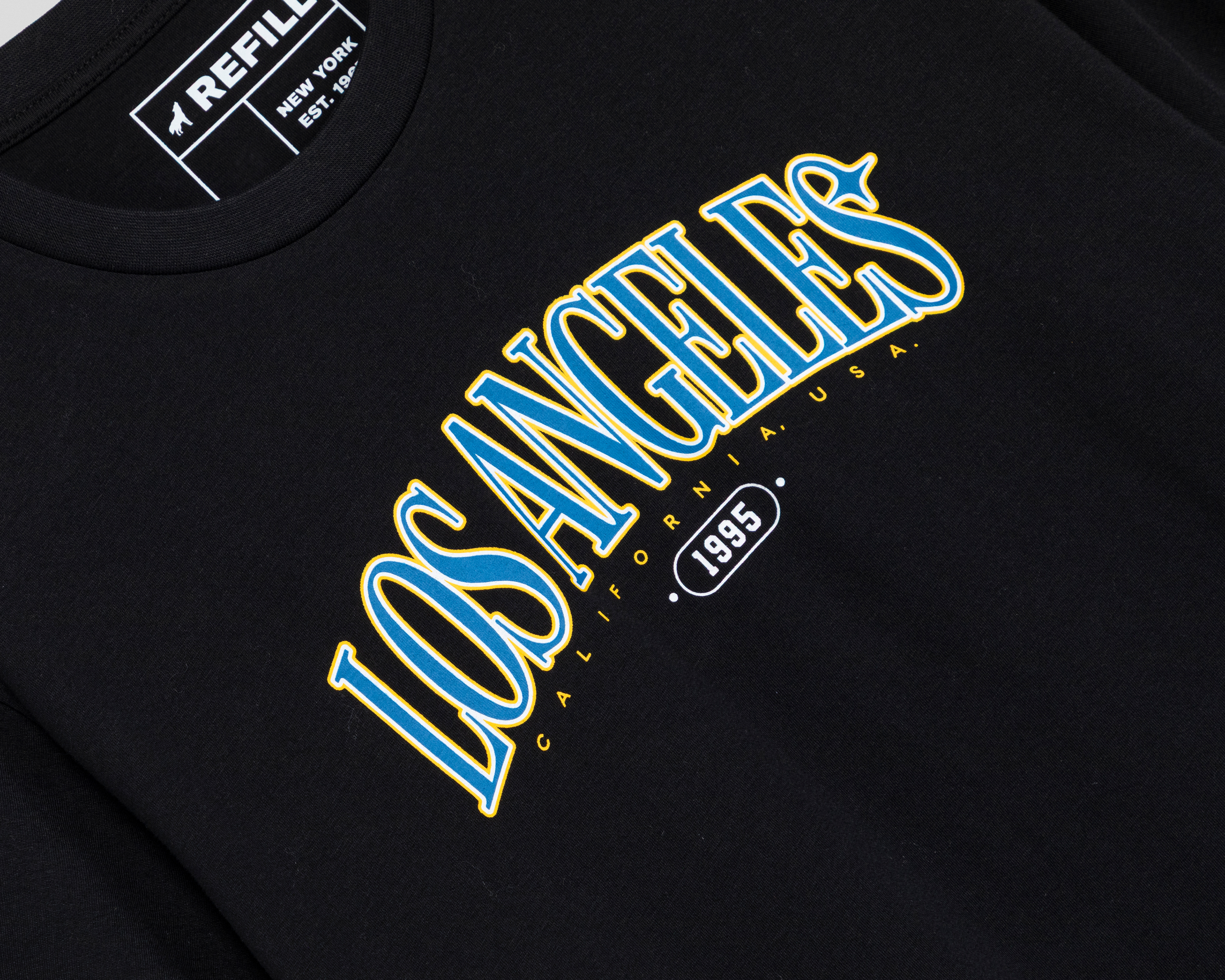 - Playera de Cuello Redondo Negro Refill para Hombre