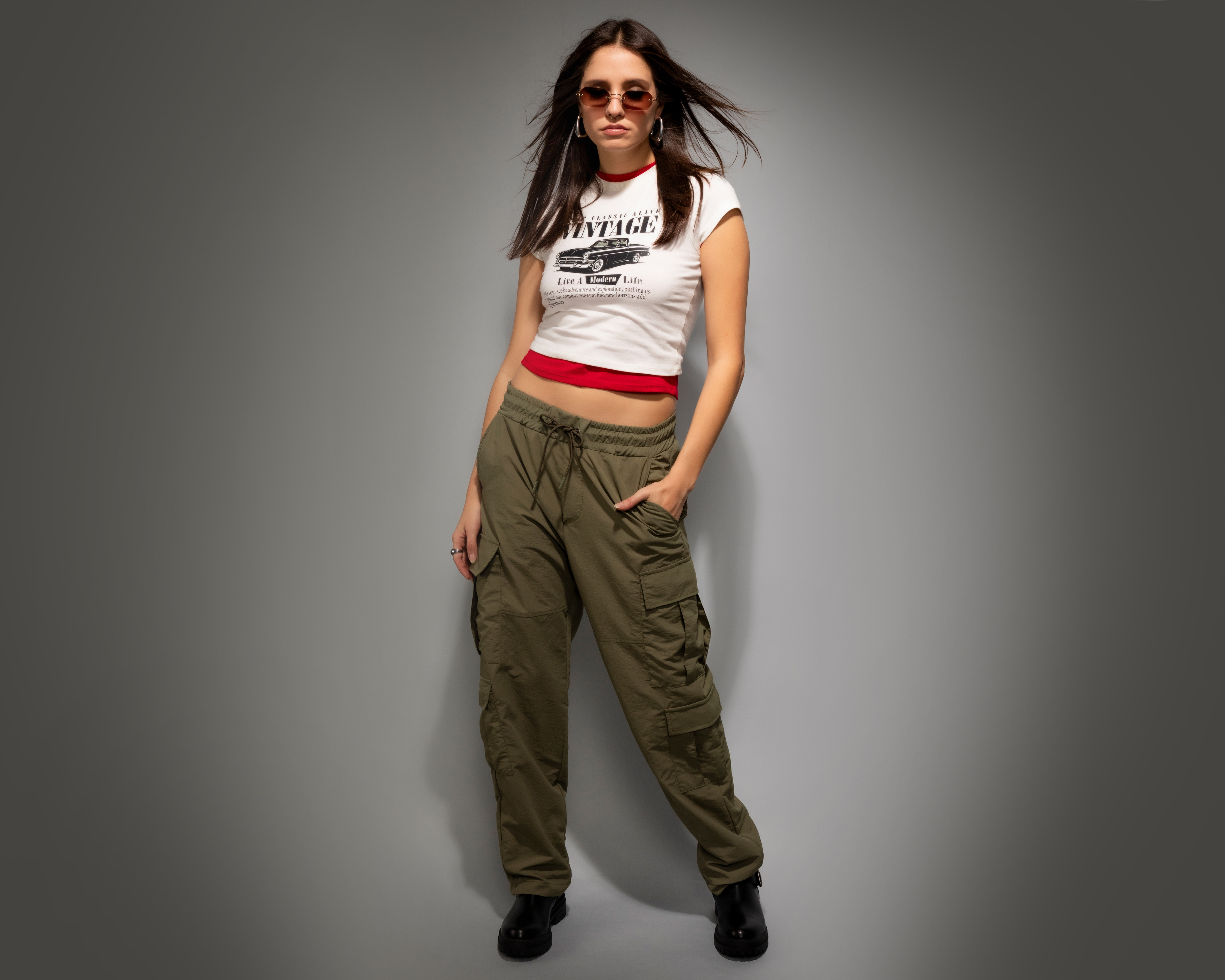 - Playera Manga Corta Crop Vintage Strona para Mujer