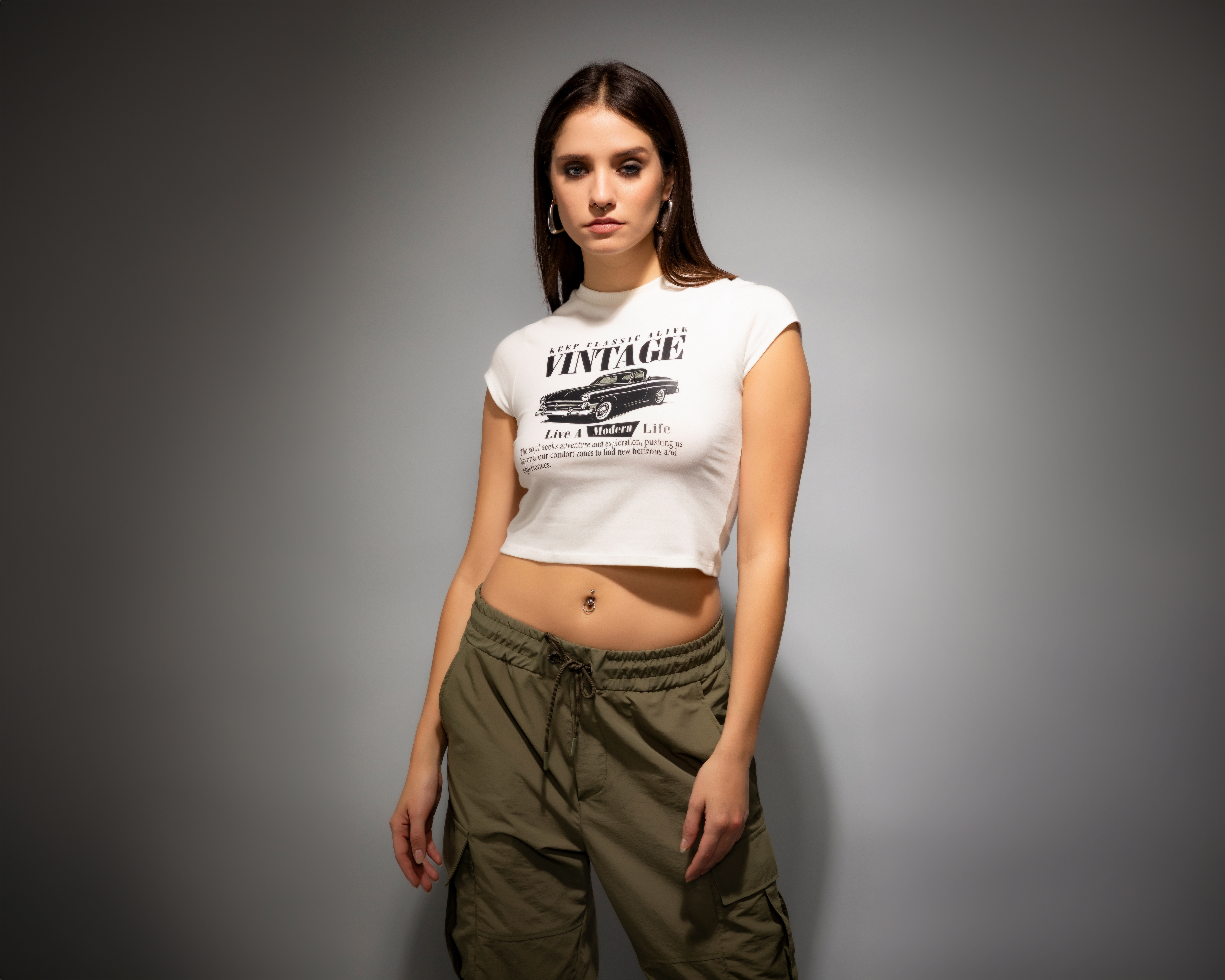 Playera Manga Corta Crop Vintage Strona para Mujer