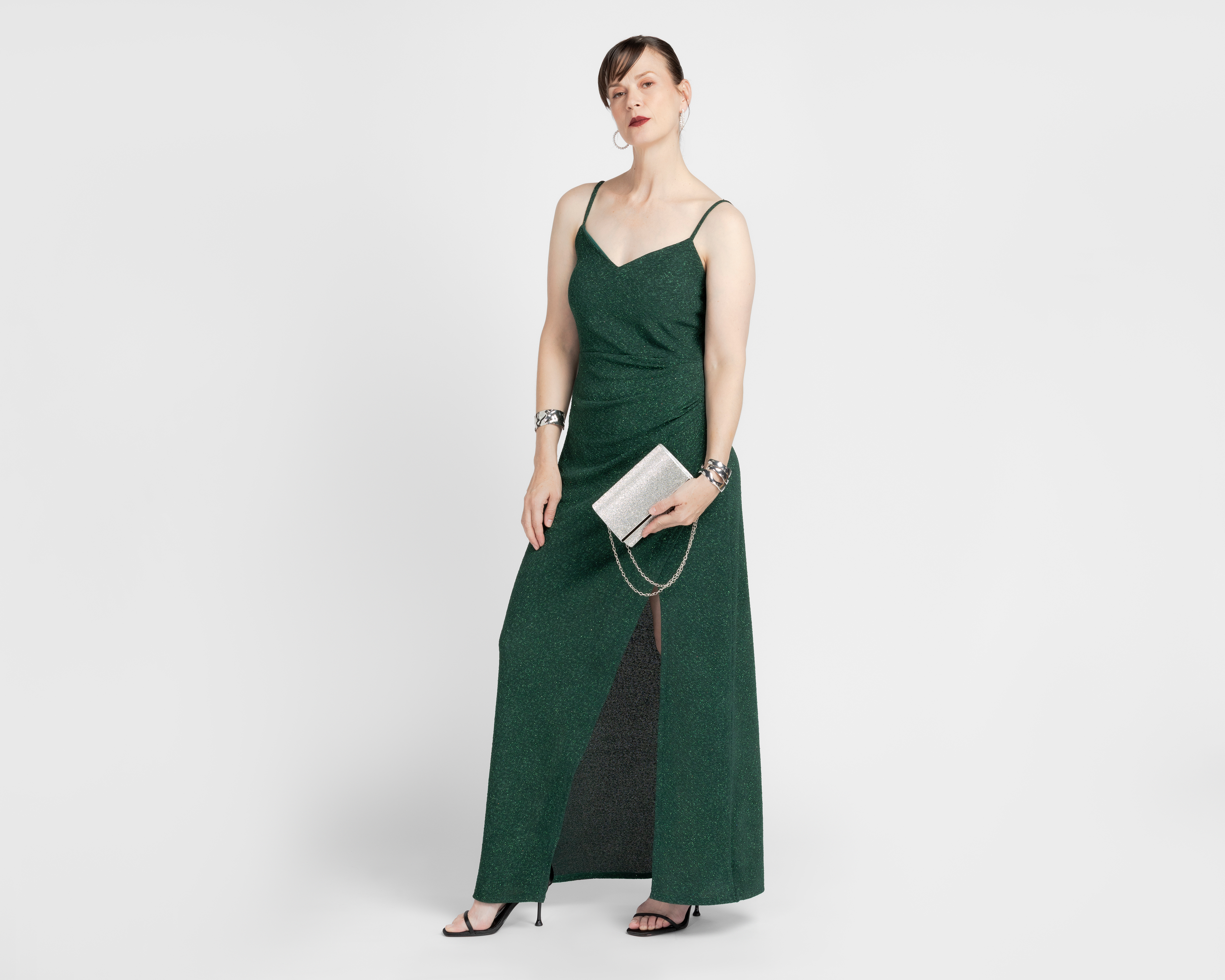 Vestido de Fiesta Sahara Verde de Tirantes con Brillos para Mujer