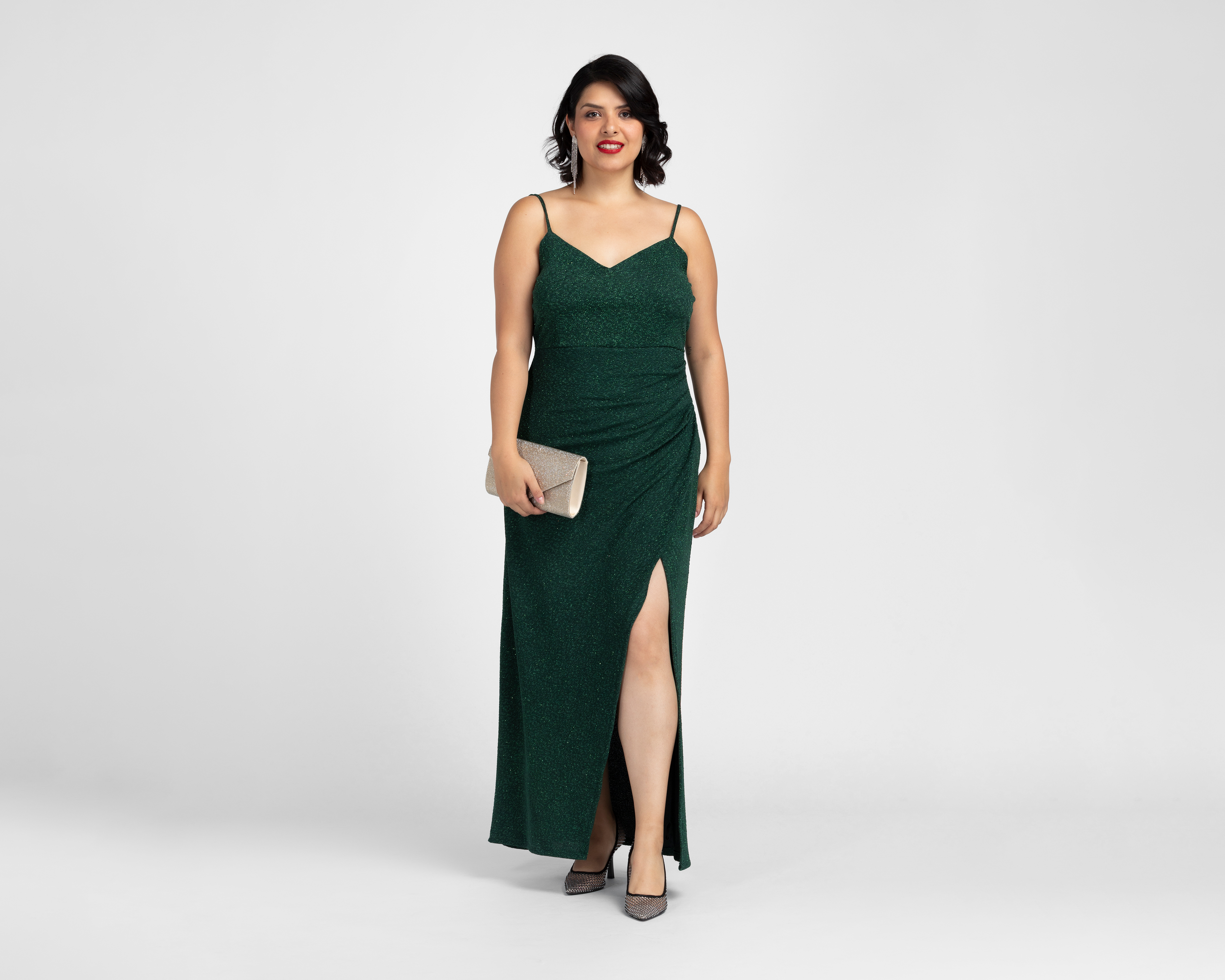 - Vestido de Fiesta Sahara Verde de Tirantes con Brillos para Mujer