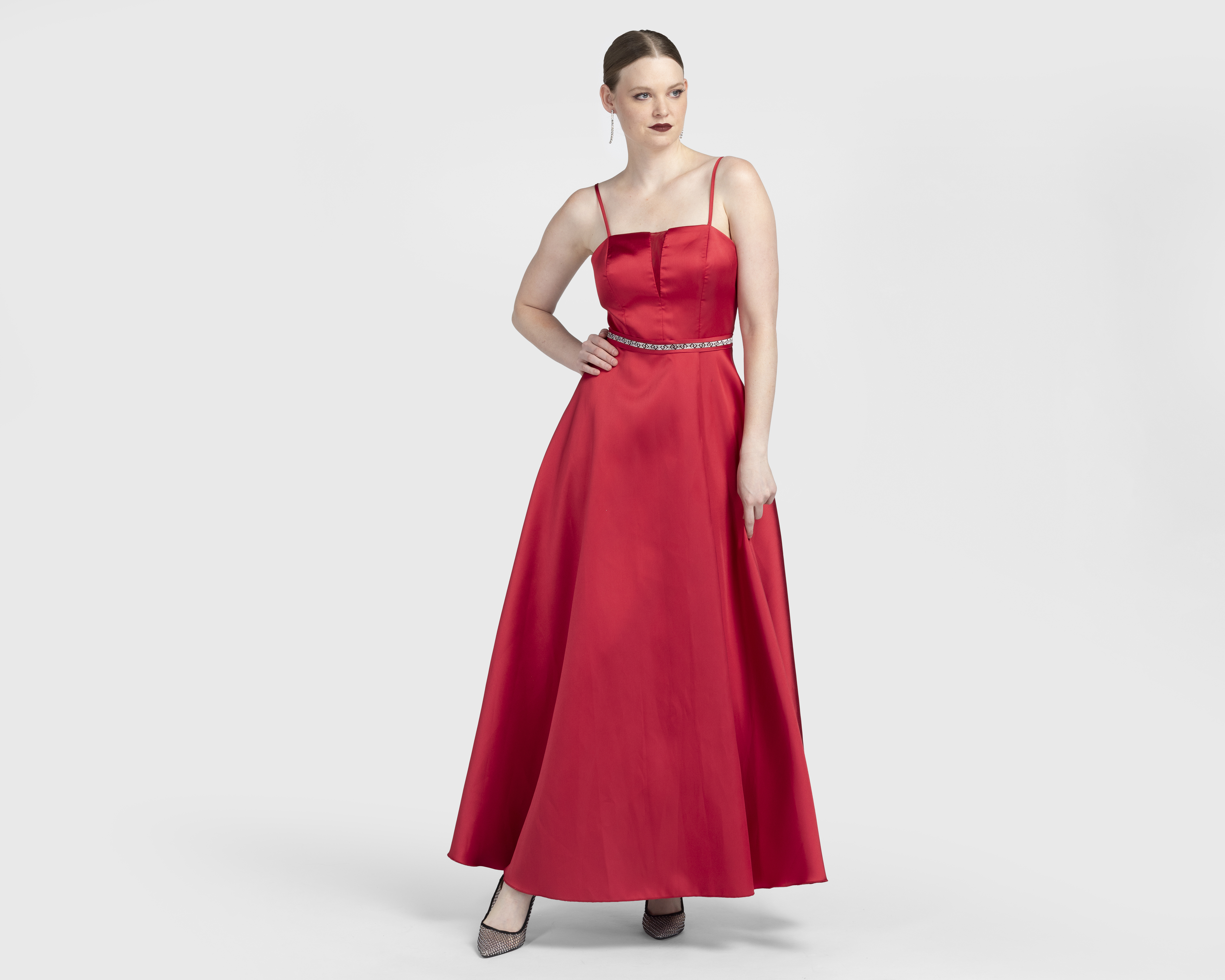 - Vestido de Noche Nina Ferre Rojo con Pedrería Largo para Mujer